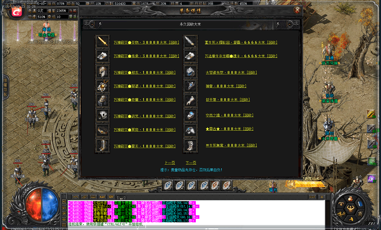 • 【打金保障】:官方回收大米,每个怪打到的都是RMB!